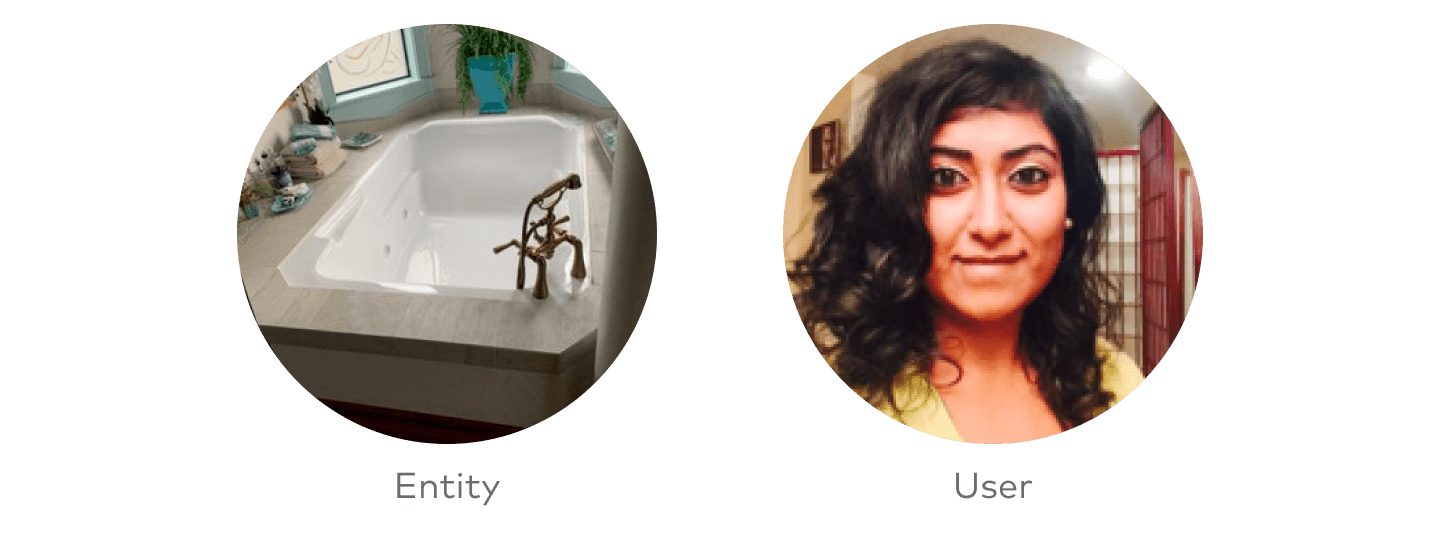 UserAvatarView is for people or users whereas EntityAvatarView is for companies, businesses, or services.