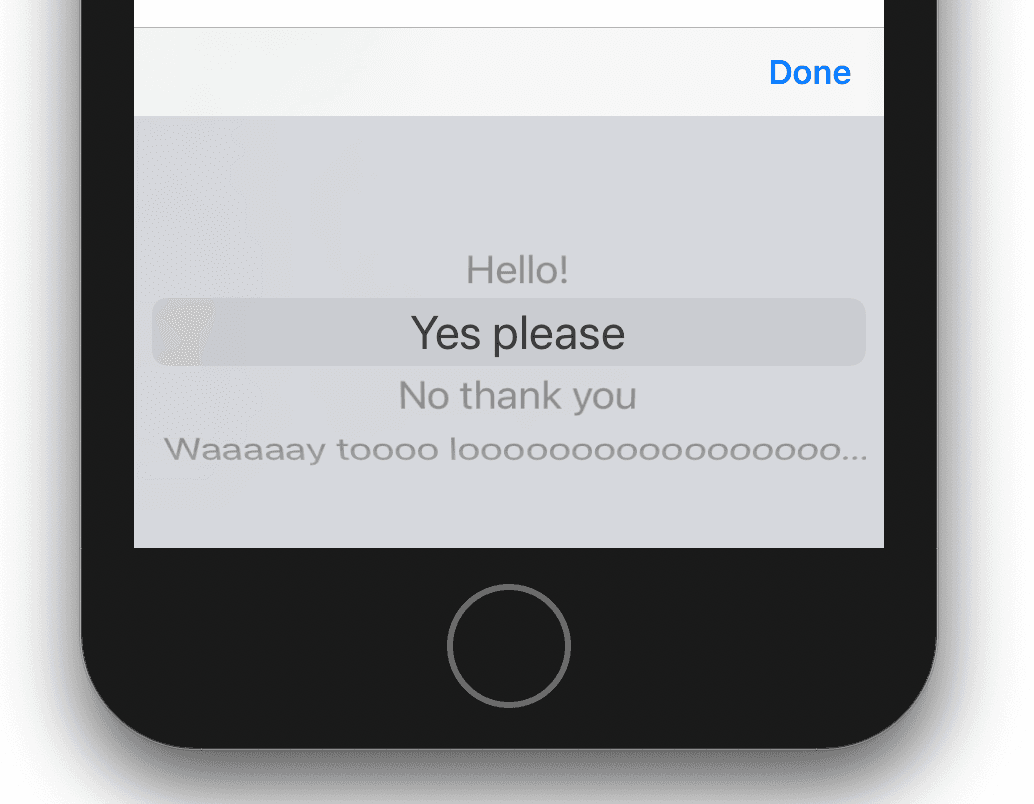 Any text can be set as a dropbox option, though long strings will truncate to fit a single line in the pickerView. Therefore, option titles should be as brief as is practicable.