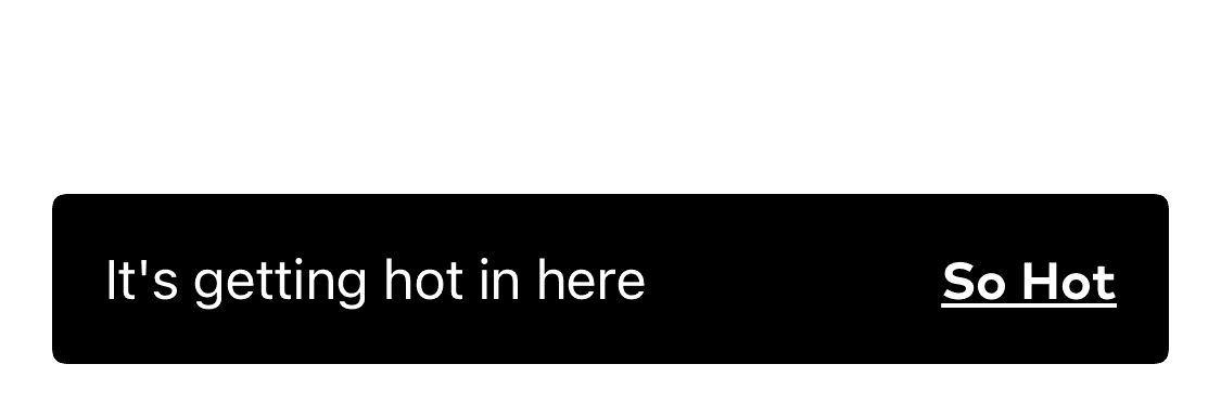 @State private var toast: TPToast?public var body: some View {VStack {TPButton(title: "Make Toast") {toast = TPToast(title: "Your toast is ready!",linkText: "Cancel")}}.withToast($toast) {print("Bread ejected")}}